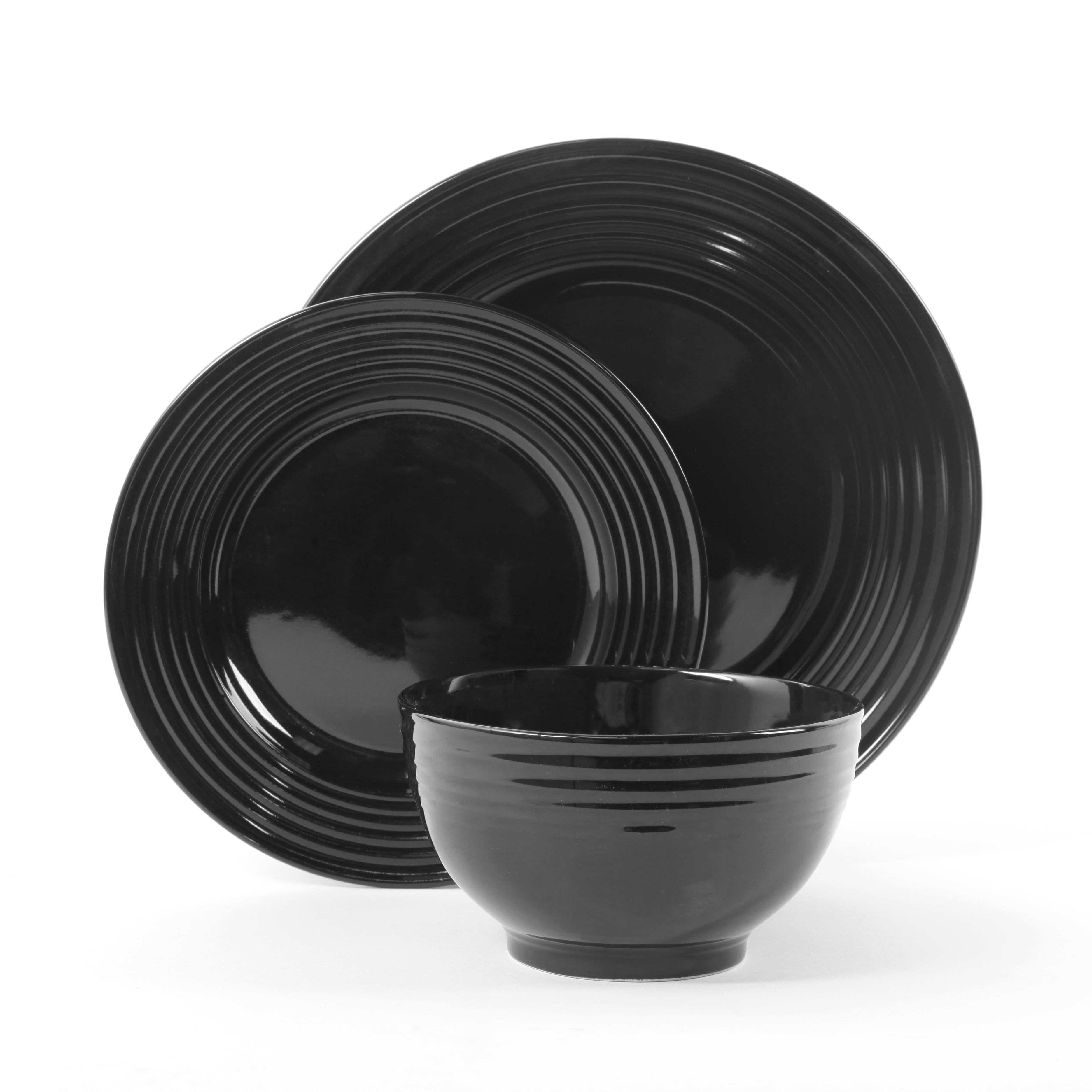 Gibson Home Plaza Cafe Stoneware Kitchen Dinnerware Set 12 Pieces Black Walmart Com
